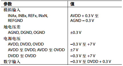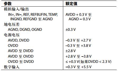 AD7794 Σ-Δ型24位ADC是另一个很好的例子。表3摘自 AD7794数据手册的“绝对最大额定值”部分。